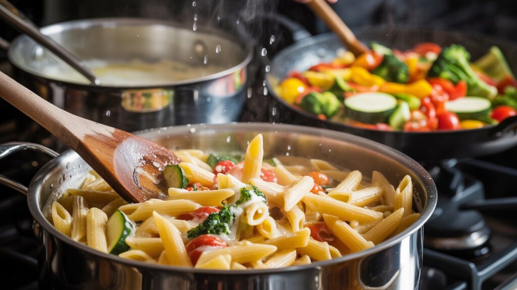 - Neglecting to stir sauce: Mix the pasta and vegetables with the sauce immediately after combining so everything is evenly coated. Skipping this step can leave uneven flavor and texture.