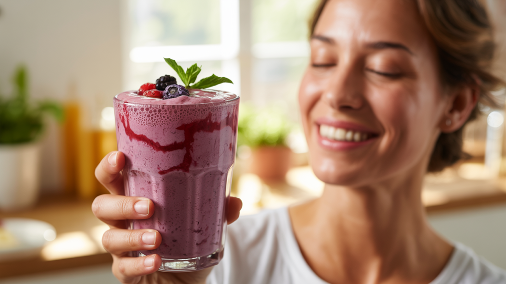 This full-bodied texture is what makes this a power-packed smoothie that is genuinely satisfying, ensuring you feel full and nourished for hours. The aroma alone—of sweet almond and dark fruit—is instantly appetizing.