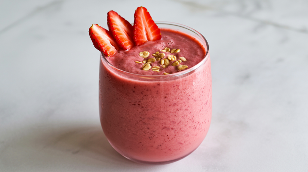 Garnish the rim with a few thin slices of fresh strawberry and a sprinkle of light granola for an essential textural contrast—the crunch against the smoothness is wonderful.