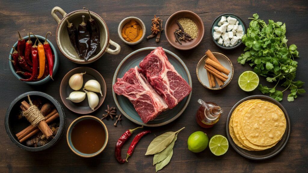 Gather these ingredients for the ultimate Beef Birria. Each item plays a key role in building flavor, so try to use authentic spices and quality beef for the best result.