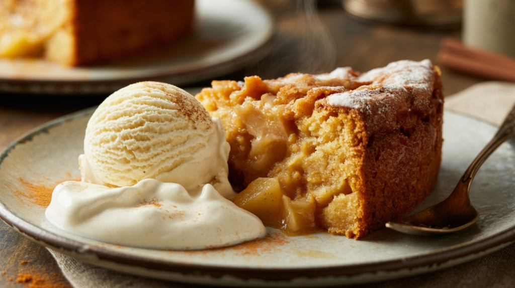 For an elevated dessert experience, drizzle the warm cake with a homemade caramel sauce or a simple dusting of powdered sugar.