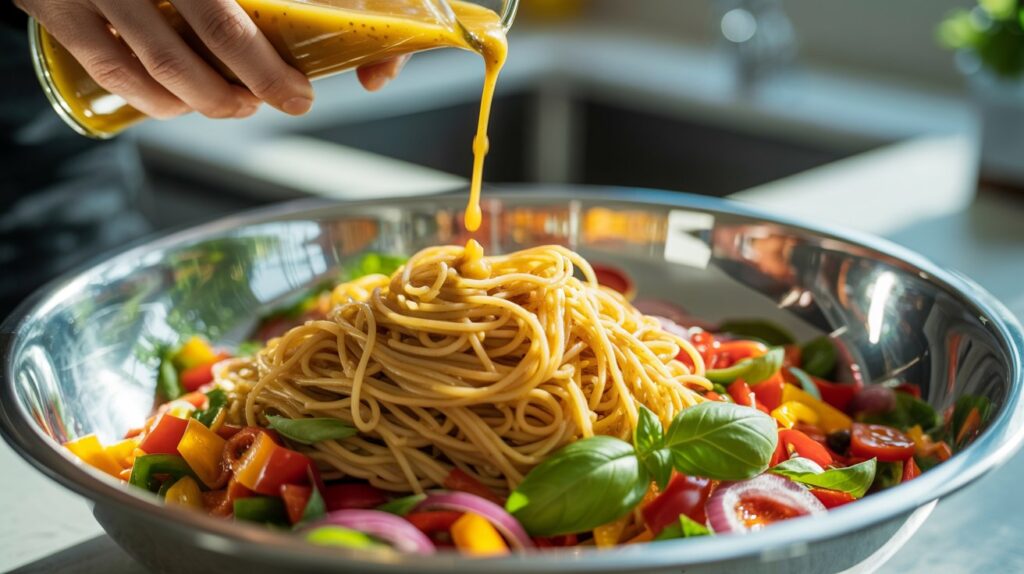 - Overcooking the Pasta: Don’t let the spaghetti get mushy. Cook it only until **al dente** (firm to the bite). Overcooked noodles will absorb too much dressing and turn to mush as they sit.