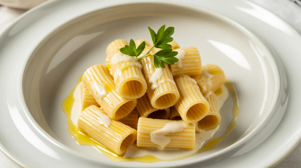 Serve the pasta in a wide, shallow bowl, allowing the creamy sauce to pool slightly. This shows off the beautiful texture.