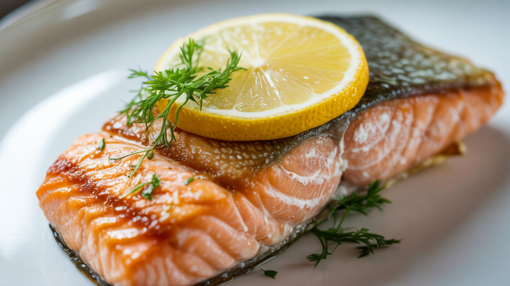 Serve the salmon fillet with the crispy skin facing up to proudly display the texture you worked hard to achieve.