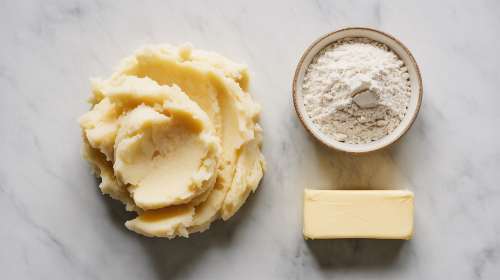 The secondary key ingredient is the fat. Traditional recipes call for butter, which provides that rich, comforting flavor and helps bind the mashed potato and flour.