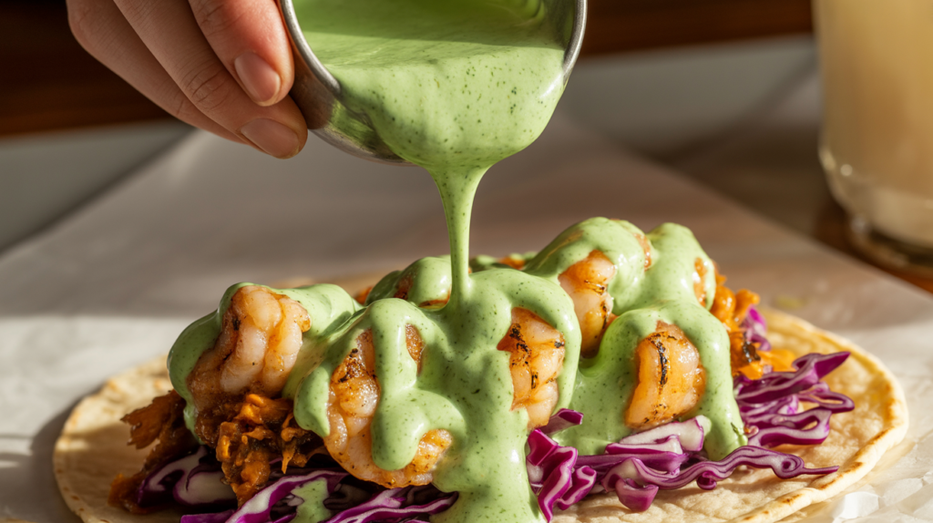 For the Cilantro Cream Sauce, use a high-quality base like Greek yogurt or sour cream. This provides the necessary tang and thickness to hold up to the strong flavor of the cilantro.