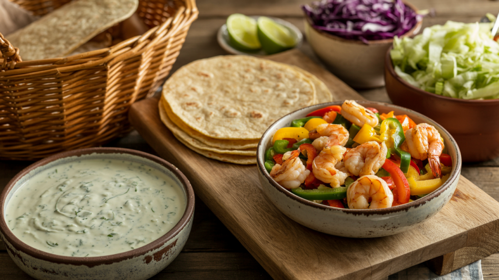Present the finished components—the seasoned shrimp, the Cilantro Cream Sauce, and the warmed tortillas—separately on a platter, allowing everyone to build their own perfect taco.