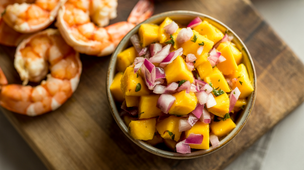 A sprinkle of cotija cheese—a salty, crumbly Mexican cheese—adds a layer of savory richness that complements the bold spices in the shrimp rub.