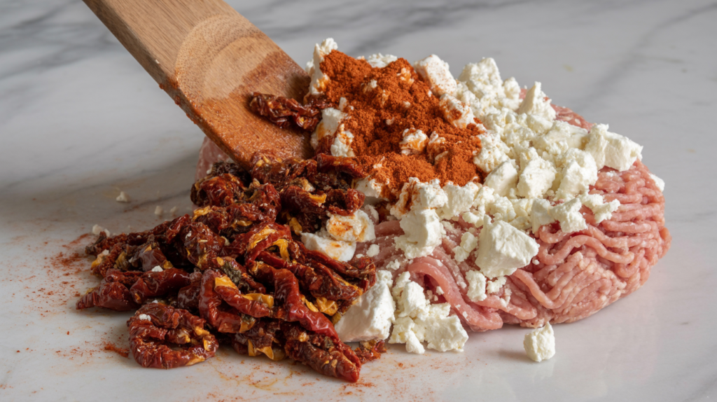 The key to internal moisture is the mix-ins: finely chopped fresh spinach (which wilts and releases moisture) and crumbled feta cheese. The feta melts slightly, essentially self-basting the burger while adding a critical salty, savory punch.
