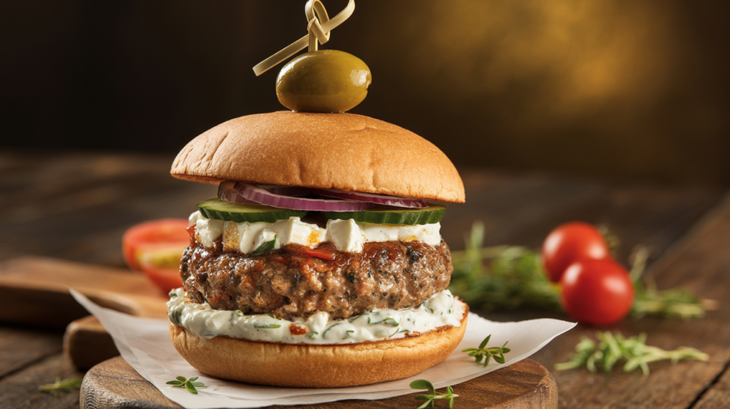 Pair the burgers with traditional Greek sides like lemon-herb rice or a simple, vibrant salad of chopped cucumbers, tomatoes, and kalamata olives.