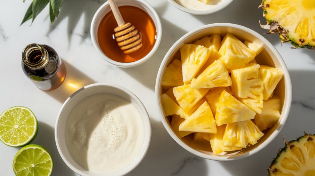 - Honey (1-2 tablespoons, optional) – A little honey sweetens the mix. Pineapple is sweet on its own, so add honey to taste if needed.