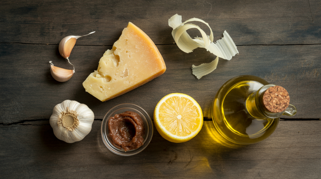 The intensity and complexity of Easy Caesar Salad Dressing are achieved through a careful balance of key ingredients that contribute richness, tang, and the essential umami flavor.