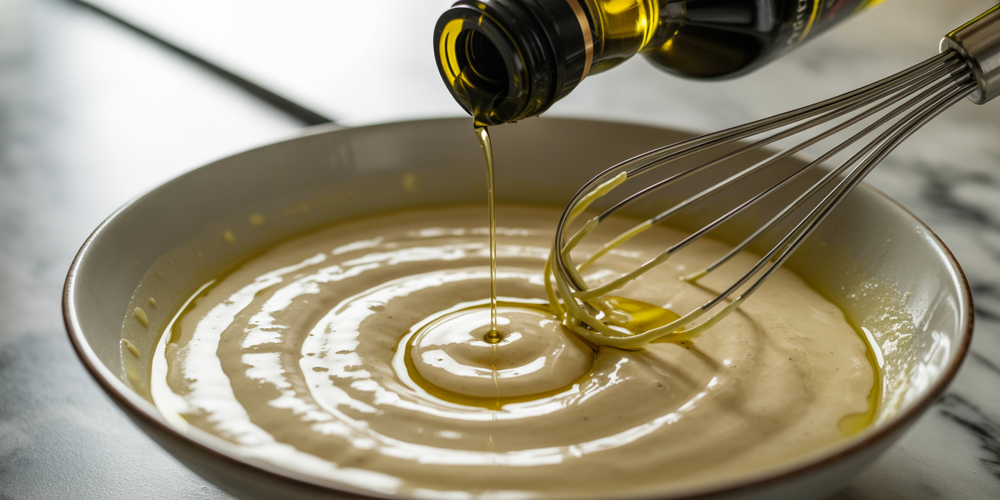 - Pro Tip: Use a blender or immersion blender instead of a whisk for the easiest and most reliable emulsion. Drizzle the oil through the cap opening while the blender runs for a foolproof creamy texture.