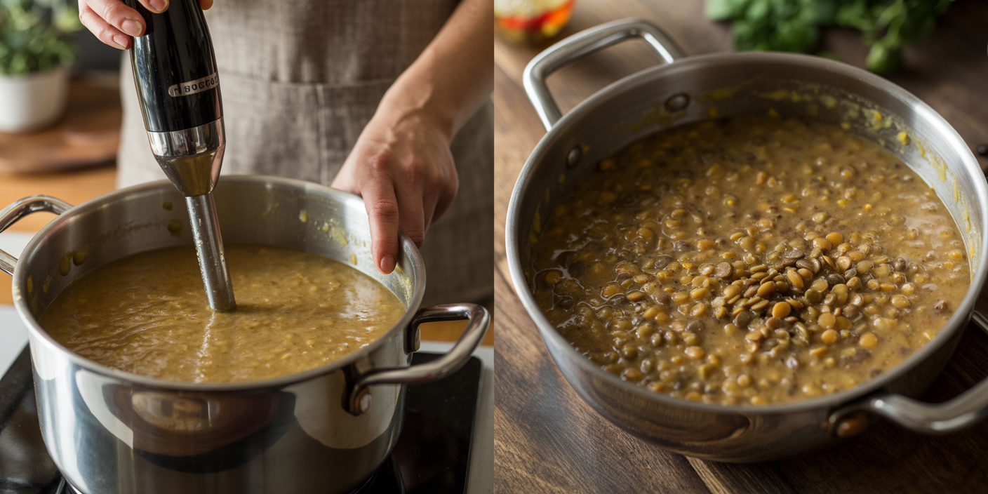 For creamy texture, blend partially using an immersion blender. For rustic style, leave lentils whole.