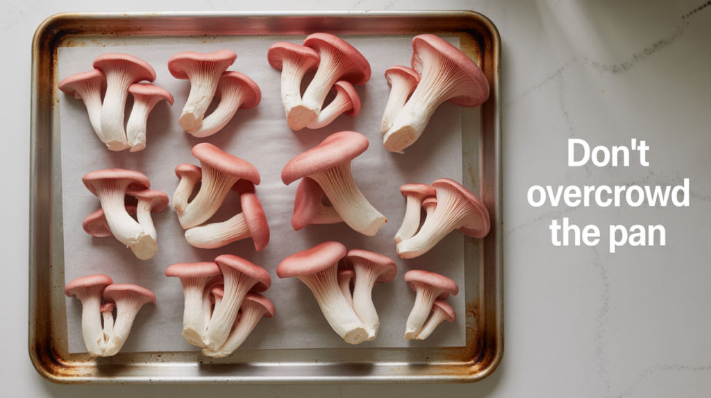 Tip 3: Don’t Overcrowd the Pan. Give the mushrooms space on the baking sheet. If they are piled too high, they will steam in their own released moisture instead of roasting. Use two trays if necessary.