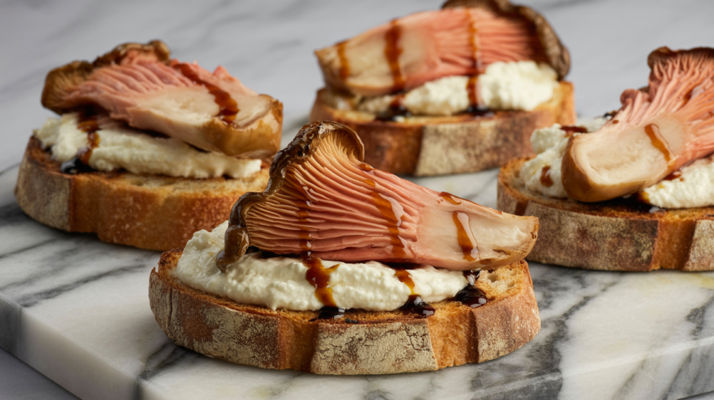 The Roasted Pink Oyster Mushroom is incredibly versatile and can be served as a sophisticated side, a flavourful appetizer, or even as the star of a light lunch.