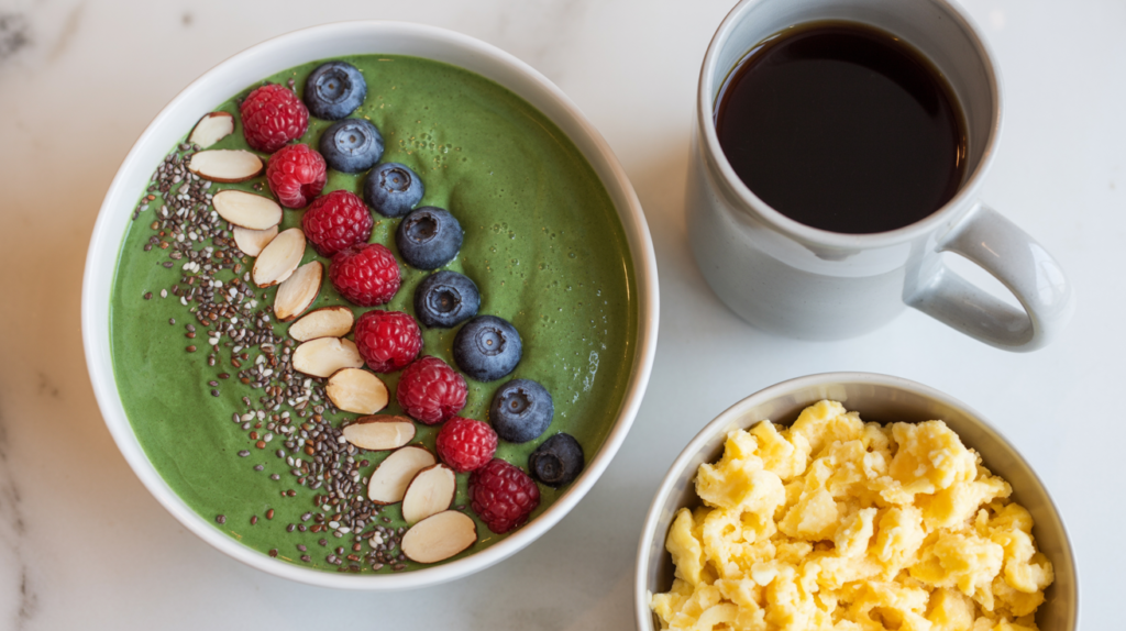 Because the Healthy Green Smoothie Bowl is so substantial and nutritious, it works well as a standalone meal, but it can be paired with simple sides.