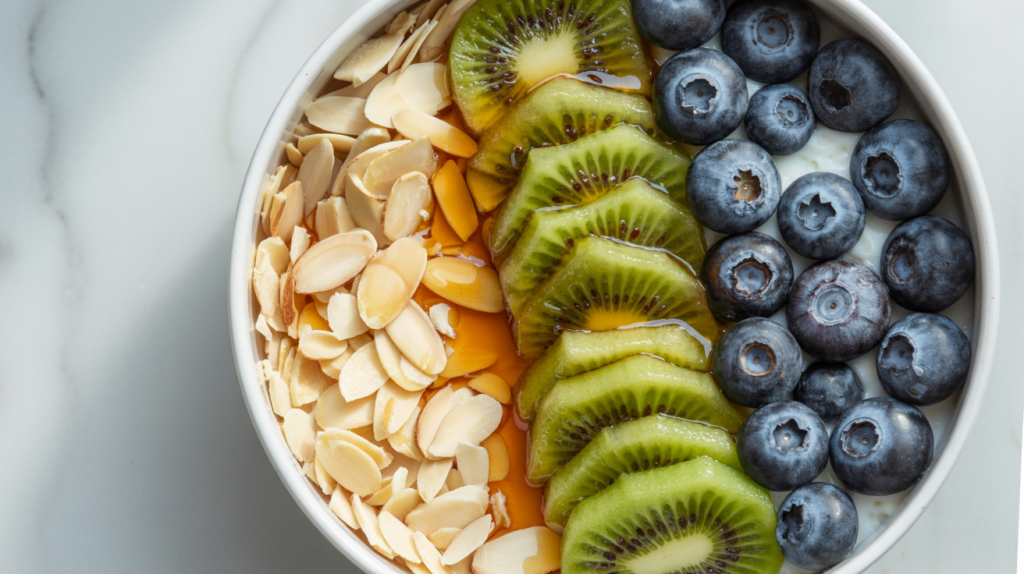 Toppings should include at least one source of crunch (granola, nuts, or seeds) and one source of fresh flavor (sliced fruit or berries). This contrasts beautifully with the creamy, smooth base.
