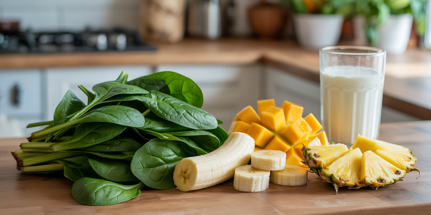 Most people start with spinach because it’s gentle, blends easily, and doesn’t overpower the fruit.