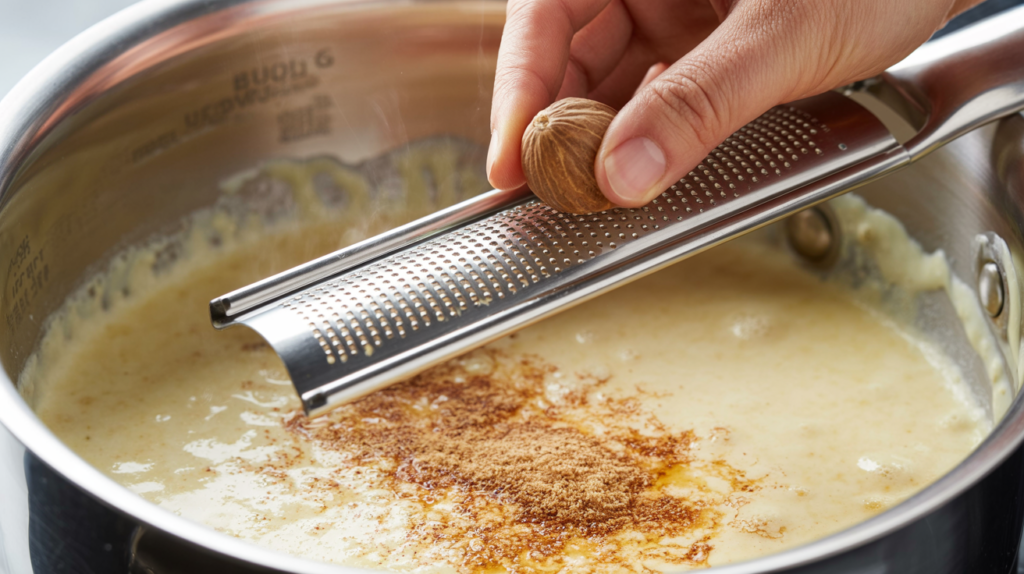 For the subtle, classic seasoning, a dash of freshly grated nutmeg is essential. It provides a warm, earthy counterpoint that perfectly complements the milk’s richness without overpowering the sauce’s velvety-smooth texture.