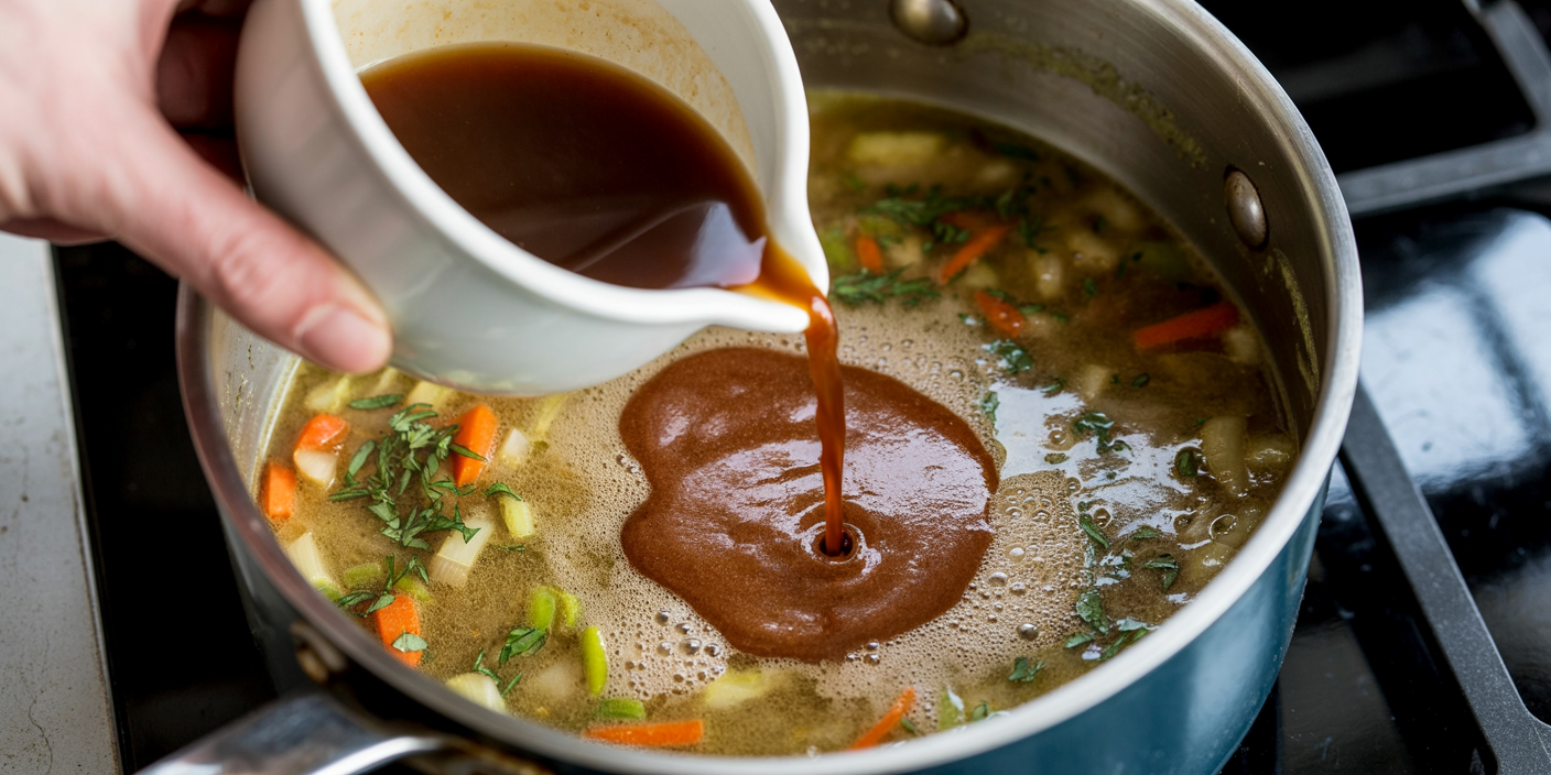 - Brown stock: Enhances richness with concentrated meaty flavors