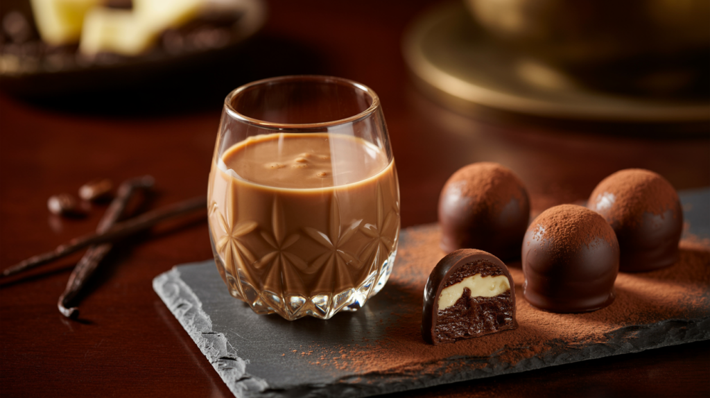 Dark Chocolate: The slight bitterness of dark chocolate truffles or a dense fudge cake is perfectly balanced by the creamy, sweet notes of the liqueur.