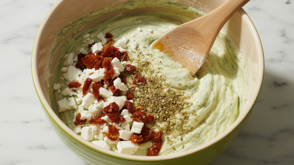 To lean into a classic Mediterranean theme, mix in some crumbled feta cheese, a handful of chopped sun-dried tomatoes, and a pinch of dried oregano.