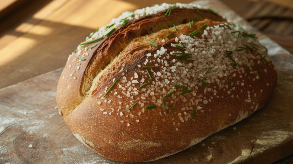 Before slicing, give the top of the loaf a simple garnish. A sprinkle of flaky sea salt or a few finely chopped fresh chives across the top adds texture and color.
