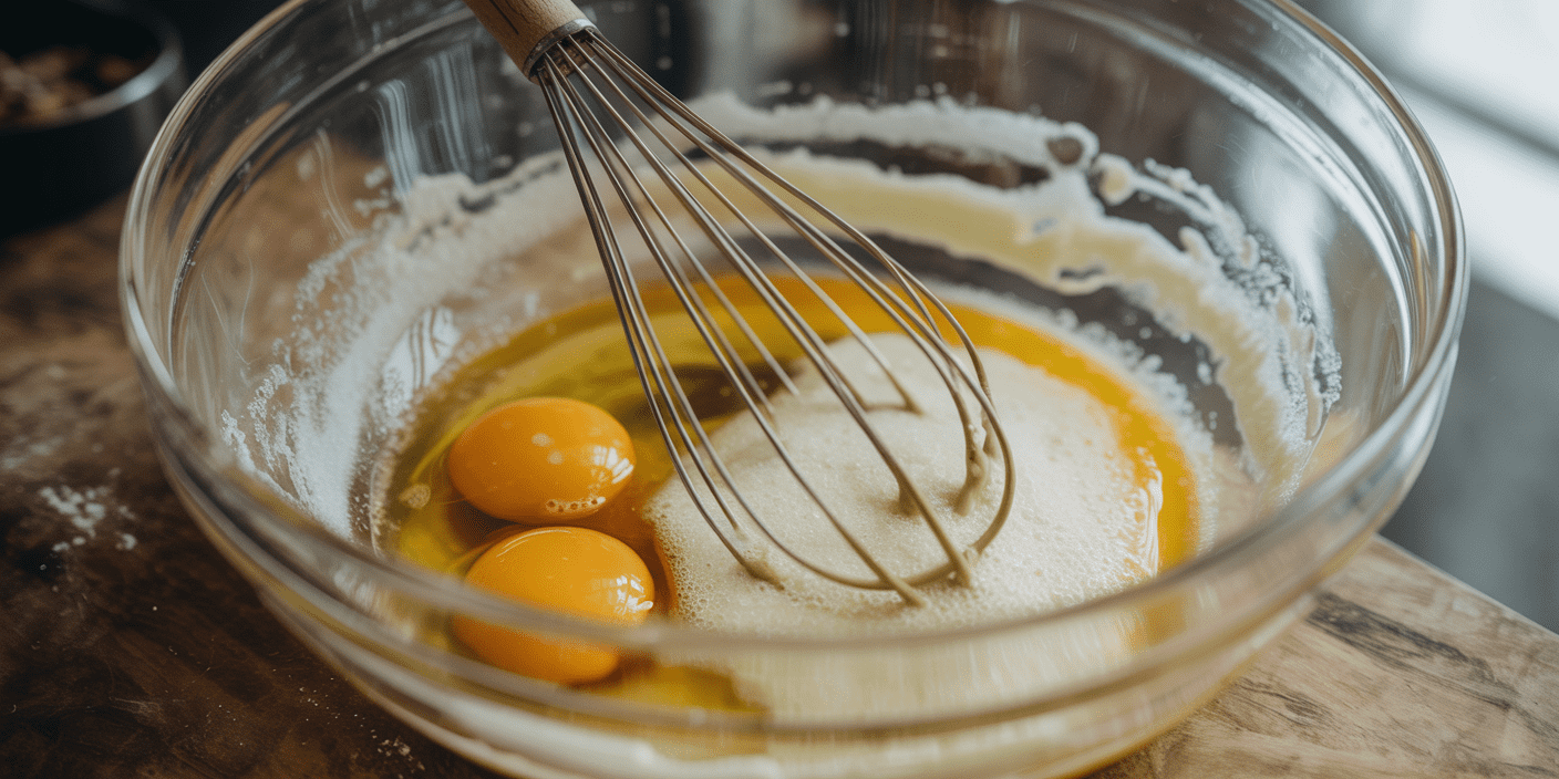 Whisk together eggs, oil, sugar, and vanilla until well blended.