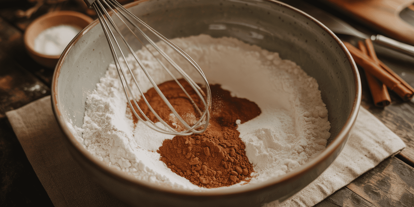 In a separate bowl, whisk flour, baking soda, baking powder, cinnamon, nutmeg, and salt.