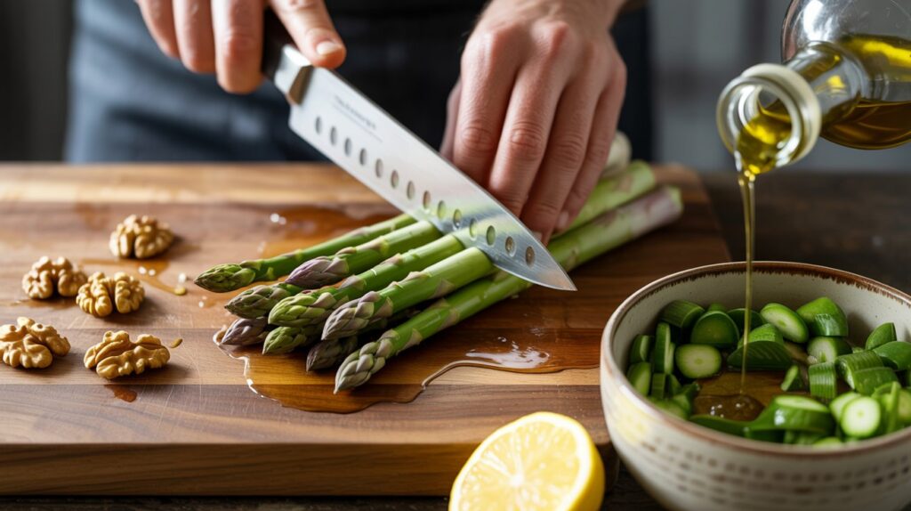 - Slicing Technique: Slice asparagus on a sharp diagonal to create thin pieces. This increases surface area so the dressing clings better.