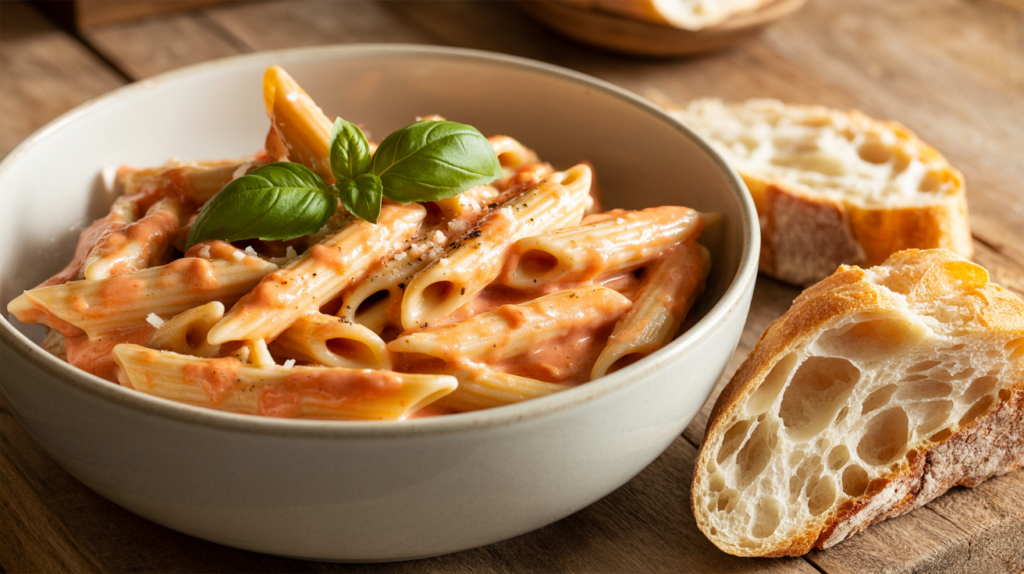 Presentation and side dishes can turn a simple plate of Pasta alla Vodka into a complete and memorable meal.