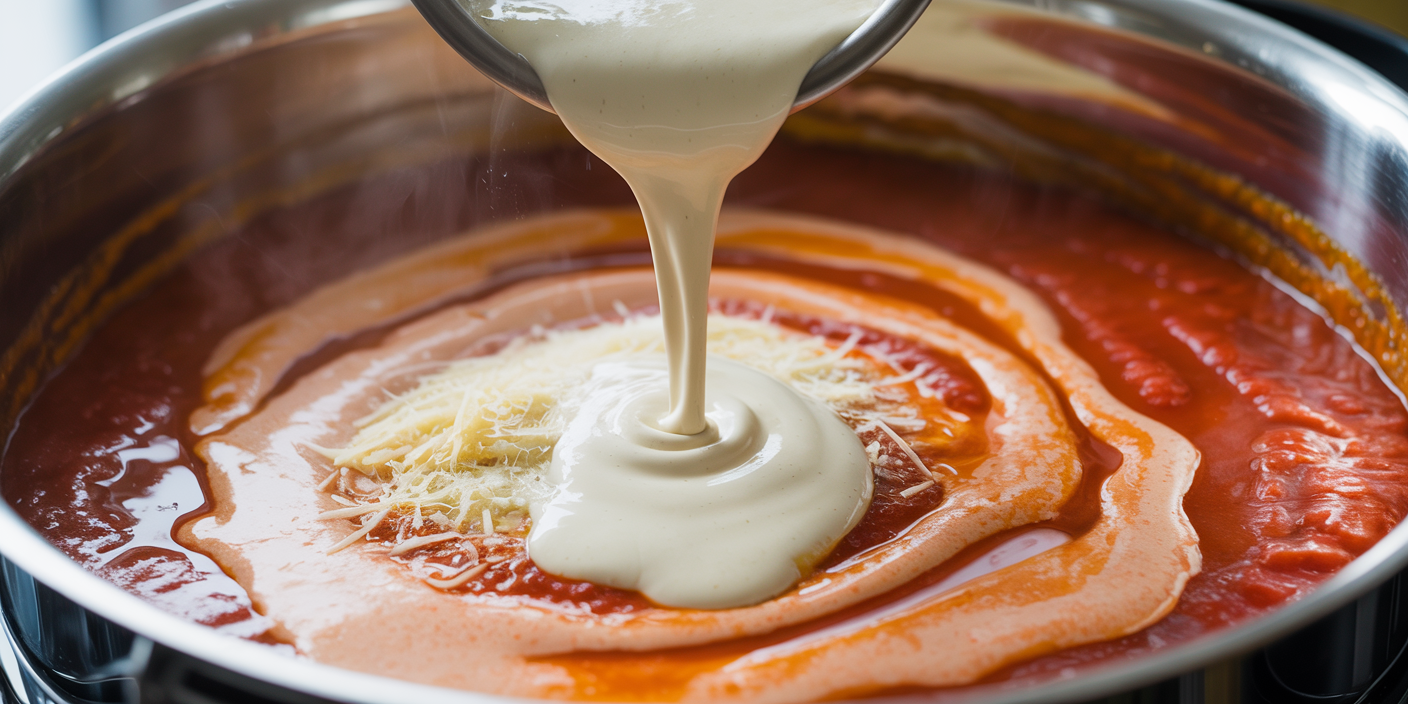 The Reduction: Simmering is not a passive activity here. The tomato base must be reduced to concentrate sugars and eliminate excess water. If the sauce is too watery before the cream is added, the flavor will be diluted.