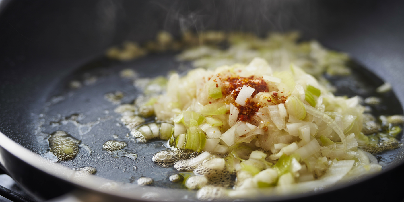Add the minced onion to the rendered fat. Sauté for 4-5 minutes until translucent and soft. Add the minced garlic and red pepper flakes, cooking for another minute until fragrant. Do not burn the garlic.