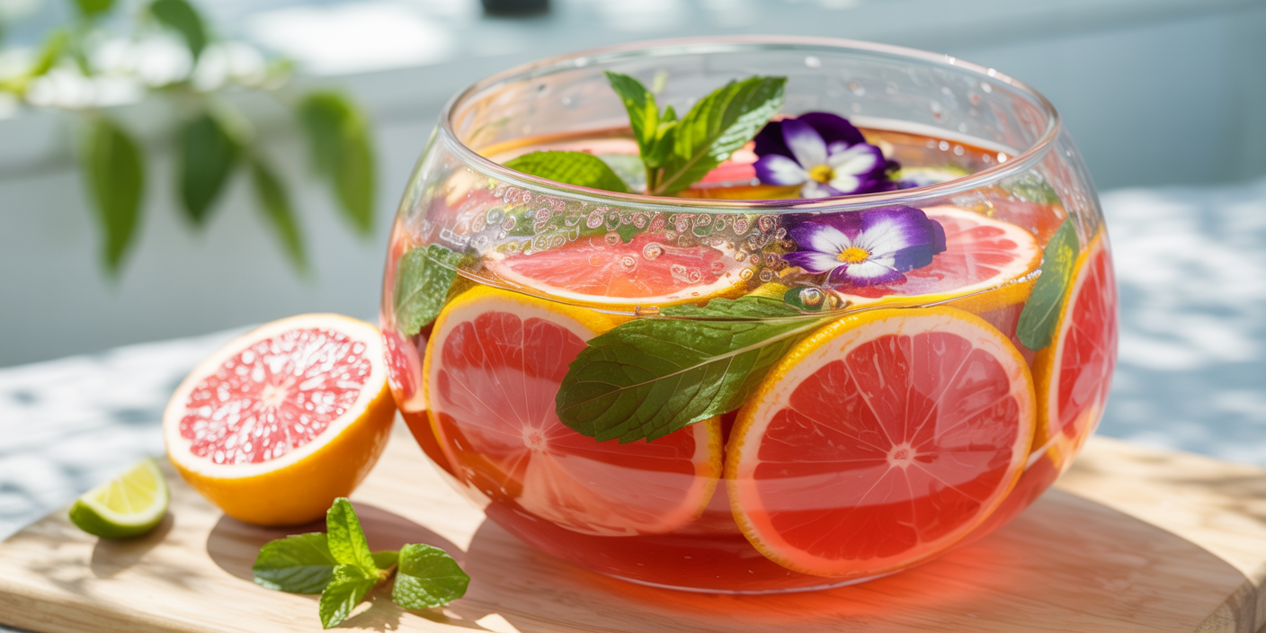 Add edible flowers, mint leaves, or additional citrus slices for presentation. Serve immediately for a crisp, refreshing experience.