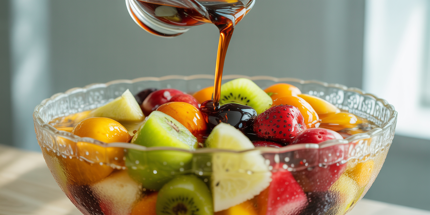 Combine sugar or honey with water, and optionally add a small amount of citrus juice or floral essence. This creates a balanced, lightly sweetened liquid that infuses the fruits without overpowering them.